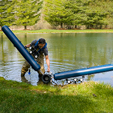 Reactive treatments such as algaecides, herbicides, and mechanical tools can help control unwanted weeds or algae and are a vital step in the Airmax Ecosystem, a simple 3 step approach to pond and lake management. The Airmax Ecosystem is the industry-leading method to achieve a clean, transparent, thriving aquatic ecosystem. Learn more about the Airmax Ecosystem.